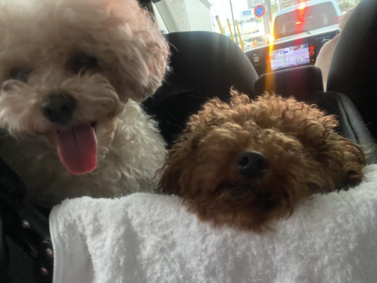 お兄ちゃんが帰省していたので、みんなと沢山遊んで帰ったら2匹とも爆睡でした笑笑
